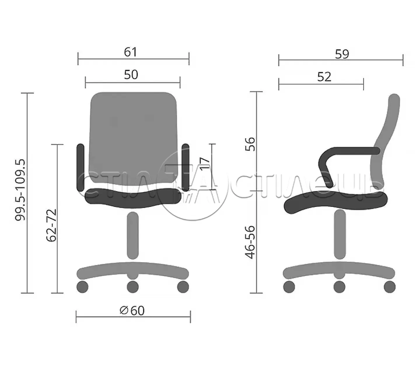 - В основі сидіння використовується гнута клеєна фанера з поролоновим наповненням під оббивкою. Каркас спинки – це міцний товстостінний пластик з внутрішніми ребрами жорсткості, який має прогин в поперековій області для ергономічної підтримки спини.