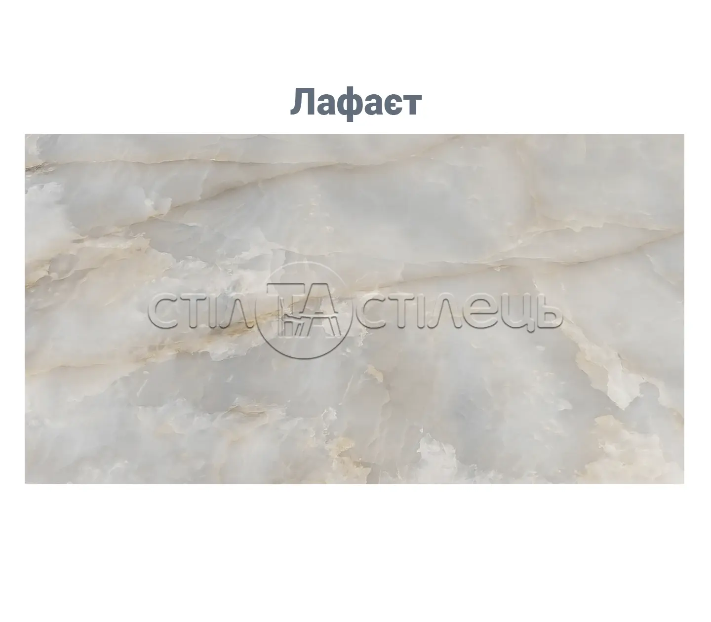 • Модель керамічного столу Лунаріо виконана на металевому дизайнерському каркасі. Столешня з глянцевої кераміки гарантує не лише стильний зовнішній вигляд, а й міцність.