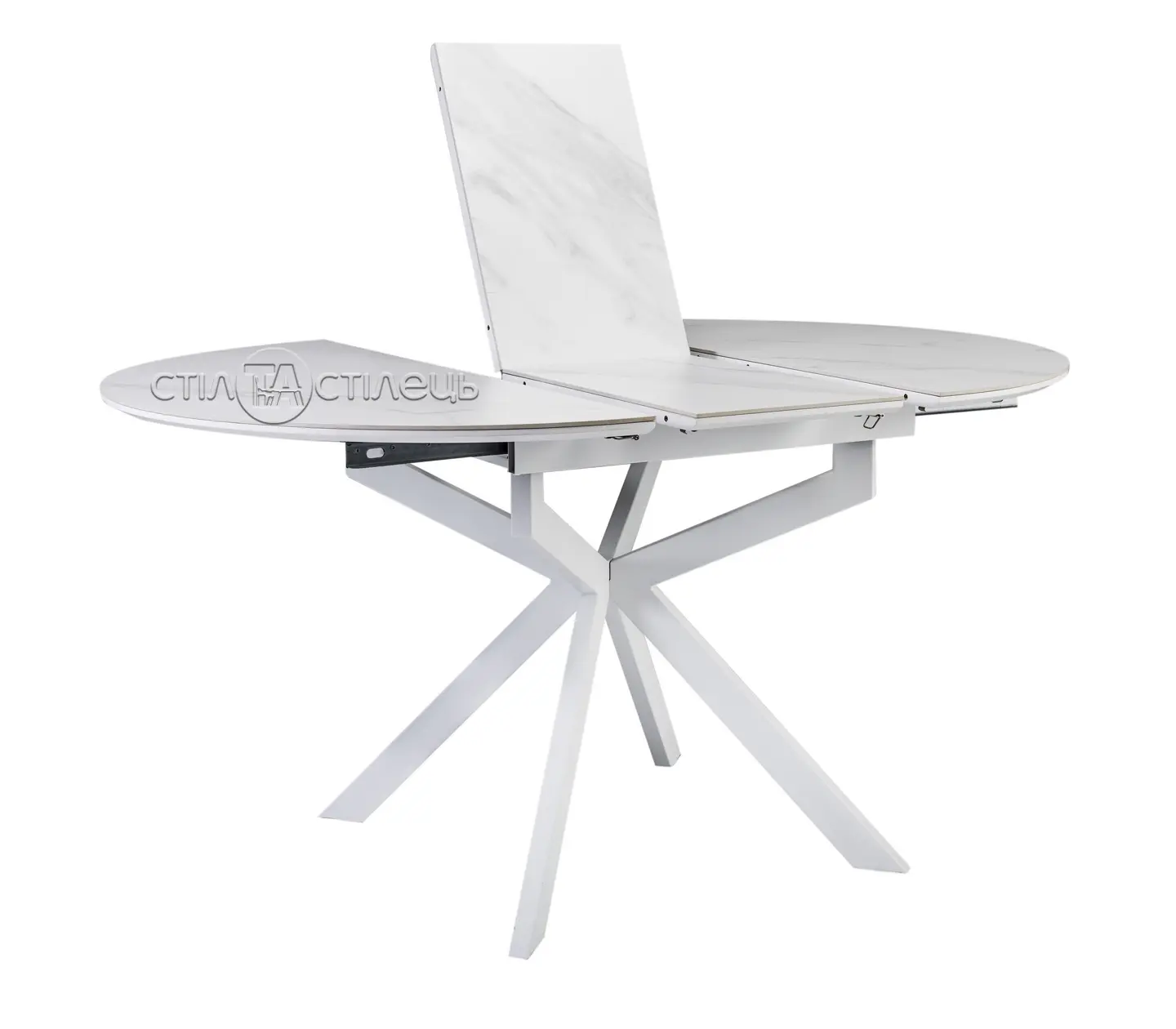 • Керамічний стіл Офелія гармонійно поєднується з різними елементами інтер’єру. Стільниця виконана з матової кераміки в комбінації з МДФ, що забезпечує її довговічність і стійкість до пошкоджень. Діаметр столу у складеному вигляді становить 105 см, а у розкладеному – 138 см, завдяки механізму розкладки книжка-автомат, який дозволяє легко змінювати розмір. Легкість та простота в розкладці роблять його зручним для адаптації до різних ситуацій, чи то сімейний обід чи зустріч з друзями.