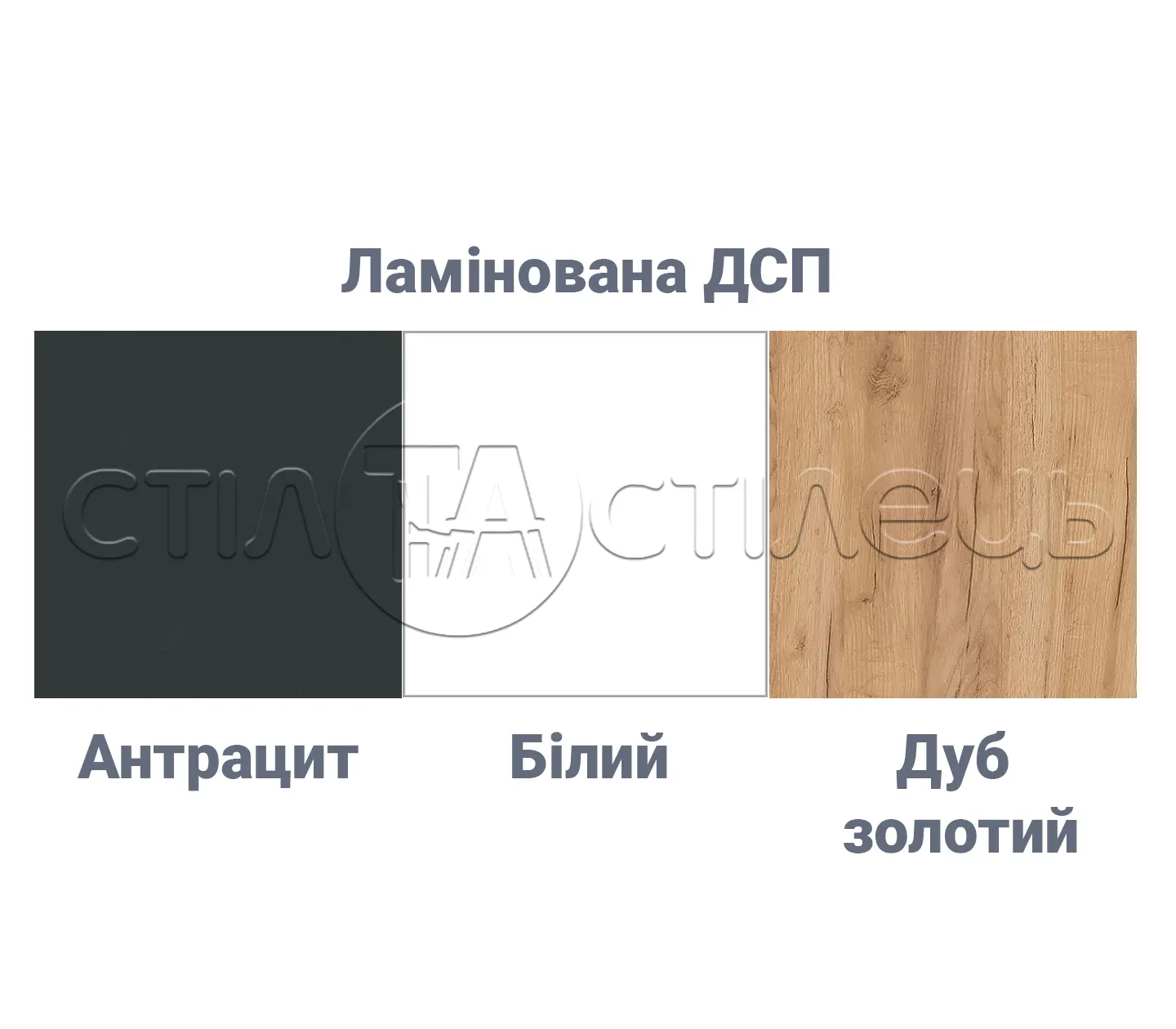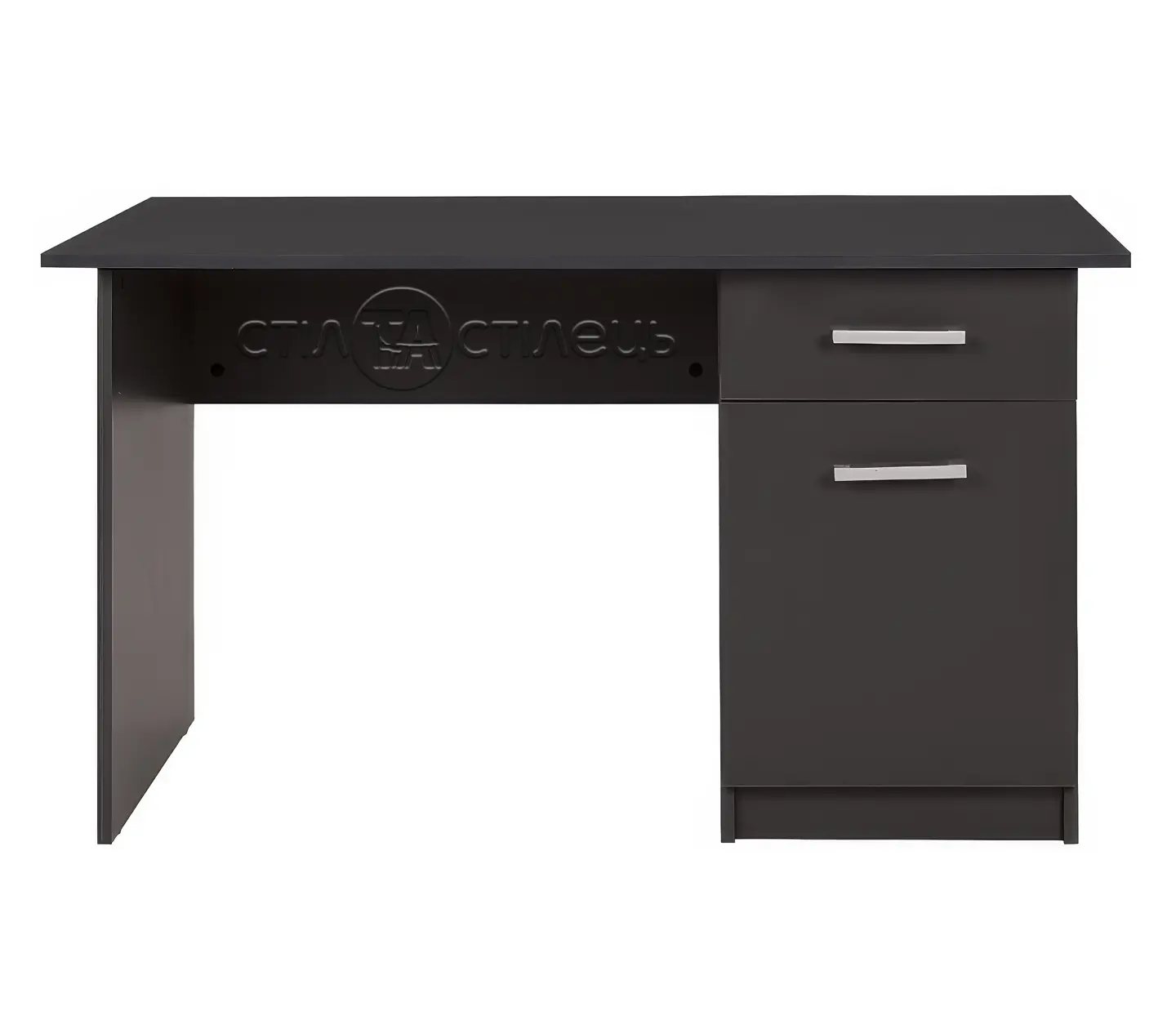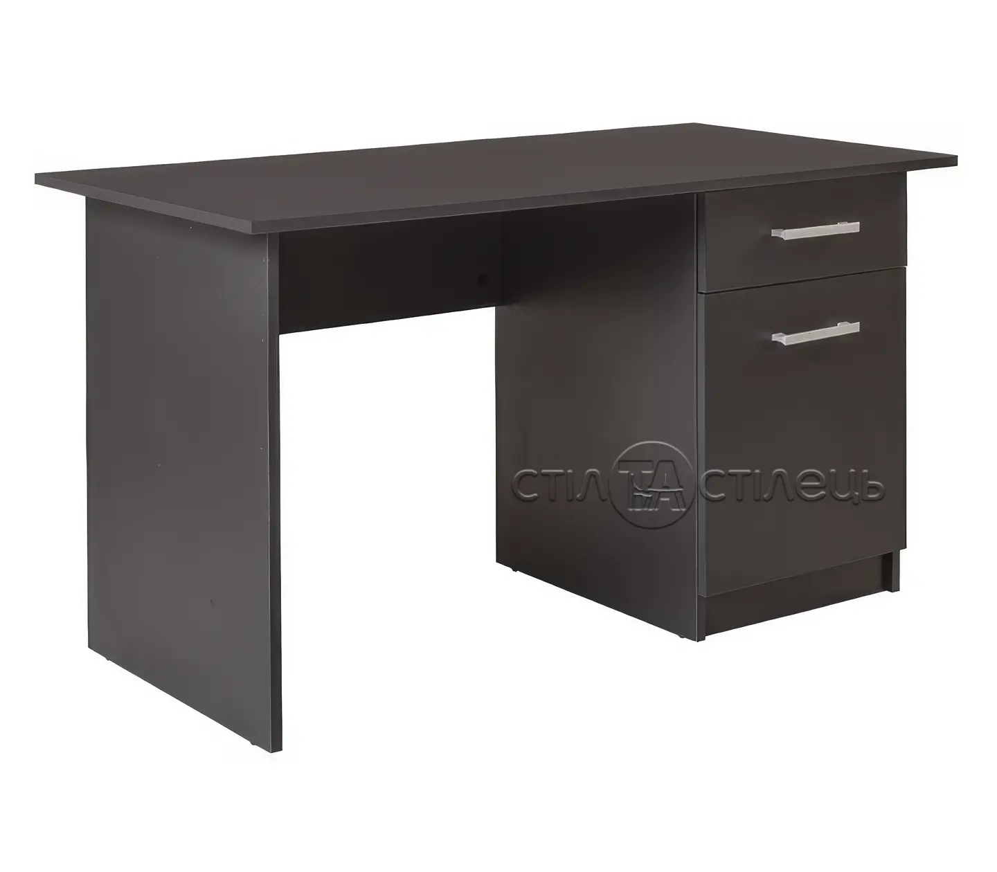 - Стіл письмовий обладнаний широкою та просторою стільницею та тумбою. Тумба містить містку висувну шухляду, надаючи зручне місце для зберігання канцелярського приладдя та інших дрібних предметів. Крім того, тумба має однодверне відділення з полицею всередині, що забезпечує зручне місце для розміщення книг, документів.